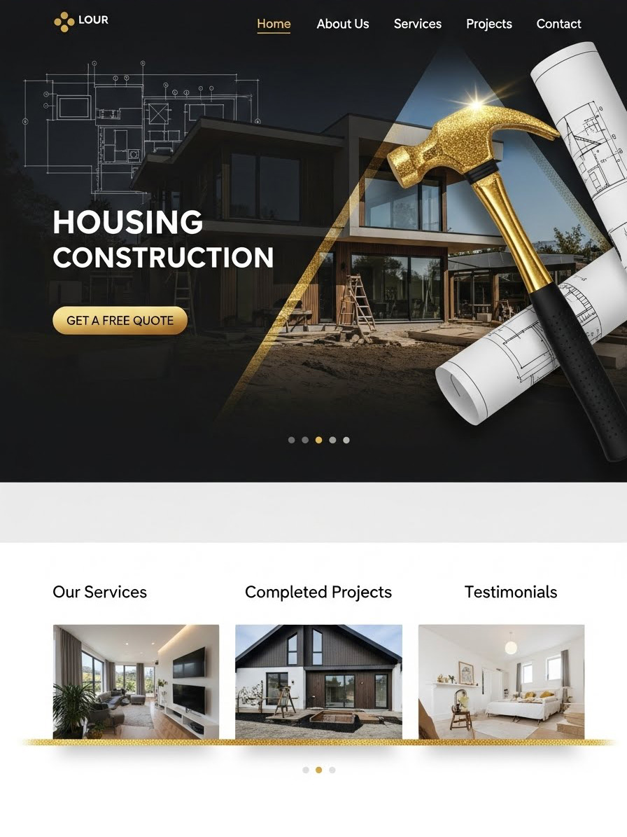 Web theme suited for housing construction companies, residential builders, or renovation specialists.