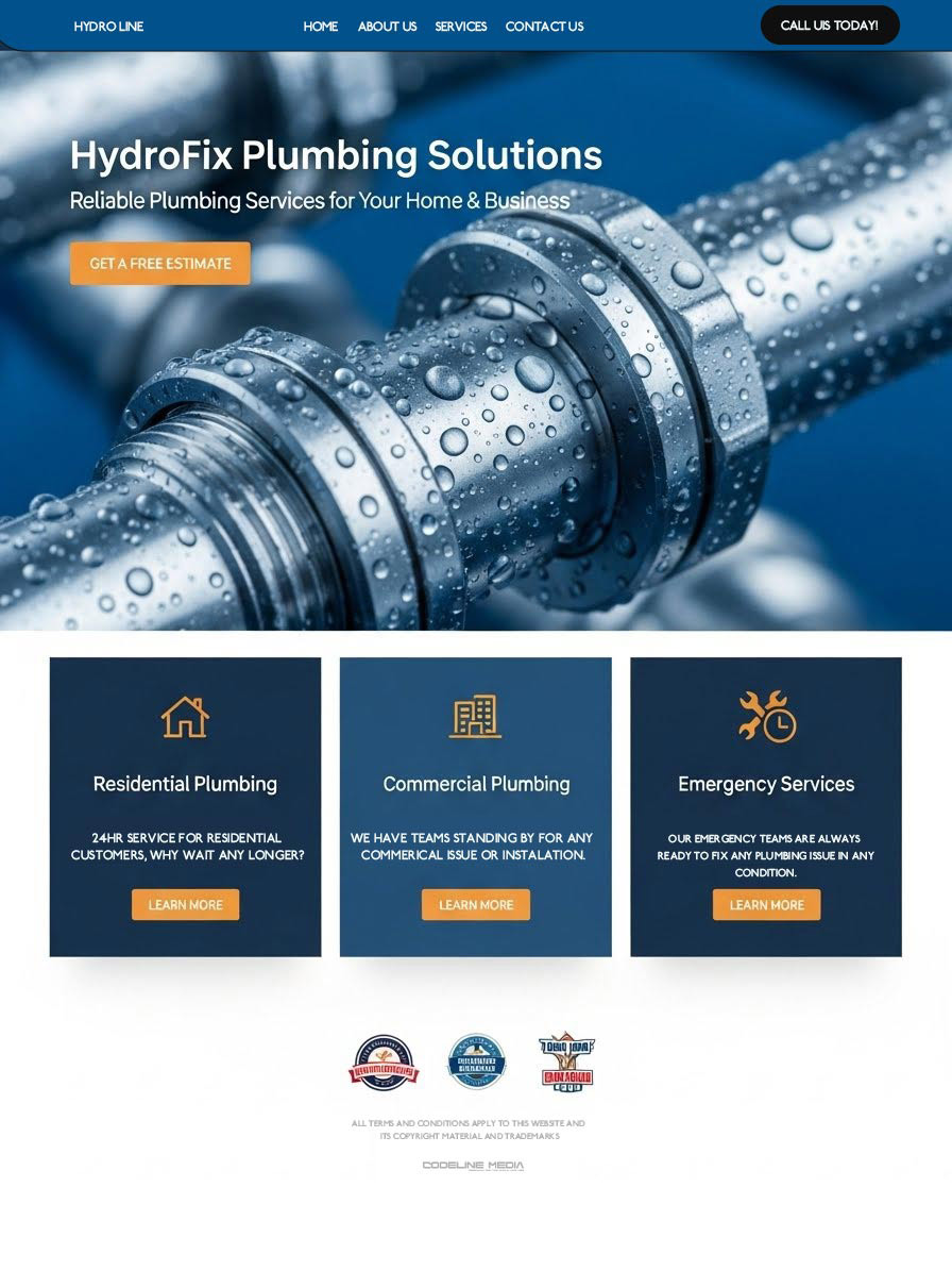 Web theme suited for plumbing services, maintenance businesses, or handyman services that need clear service listings.
